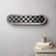Schlichte Optik der gebürsteten Metallschicht, dann eine Schicht aus schwarzen und transparenten Quadraten wie Schachbrett-Platine. Dann aus dem gleichen gebürsteten glänzenden Metall-Look schneiden um das Deck. Vier Deck Größen verfügbar, dies ist die größte.