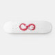 Infinity symbole of continuous stream of red pouring into glass glass glass on white background.
