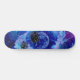 traditional watercolor design featuring a blue and purple colored planet in a blue and purple galaxy wited flying saucers in cube closing in on a a skateboard