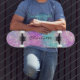 La nébuleuse arc-en-ciel moderne scintille le nom de la parties scintillant girly skateboard dans les couleurs violettes, roses, bleues.