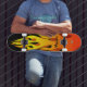 Patinage de marque Dd fait en noir, avec des graphiques de flammes après-brûlures. Personnalisez avec votre propre nom.