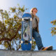 Patinage de marque Dd, avec illustration graphique d'un grand requin blanc coincé dans une bouteille d'eau, contre un arrière - plan bleu. Customisez d'ajouter votre propre texte.