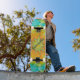 Patinage de marque Dd, réalisé dans un style de teinture rétro, en jaune, orange, turquoise, rose et vert. Personnalisez le champ de texte de couleur turquoise pour répondre à vos besoins.
