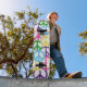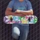 une planche à roulettes avec de divers signes de paix colorés