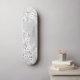 Branche de fleurs de cerisier blanc sur un arrière - plan brillant de parties scintillant argentée. Customisez ce Skateboard avec le nom de votre fille !