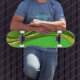 Skateboard montré dans un vert citron vert et vert couleurs abstraite impression graphique. Couleurs Lime, Vert, Or avec étincelles Acheter tel quel ou customiser cet article à votre goût. Image stock
