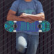 SKATEBOARD PEACOCK FEATHER MOTIF TURQUOISE VERT BLEU AVEC NOM