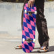 Skateboard Pink and Blue Harlequin Checkered Design