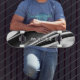 Customisez ce skateboard élégant avec un arrière - plan à gradient liquide noir et blanc audacieux. Personnalisez-le en ajoutant votre propre texte, en choisissant parmi différentes polices, en ajustant la taille et la position, et même en incorporant des clipart, des photos ou des formes pour le rendre unique.