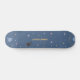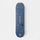 Un Skateboard thématique espace avec planètes, étoiles et une navette spatiale en style dessin animé sur un arrière - plan bleu et un nom personnalisable. Bonne idée cadeau pour un enfant (ou pas) qui aime les aventures spatiales!