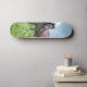 La patineta tiene un diseño específico, representando la imagen de un caballo gris de gran poder. Este caballo está situado en un entorno que evoca la sensación de un campo. La patineta presenta una ilustración detallada y llamativa del caballo gris, que se percibe como majestuoso y fuerte. La combinación de la patineta y el diseño del caballo en el campo sugiere una fusión entre la energía y la libertad asociadas con la actividad de patinaje y la naturaleza salvaje y poderosa que simboliza el caballo gris en el escenario del campo. En conjunto, el diseño evoca una imagen visual única que fusiona la cultura del patinaje con la belleza y la fuerza de la naturaleza representada por el caballo.