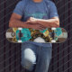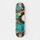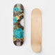 Skateboard Steampunk Clock and Turquoise Roses on Striped