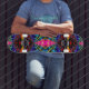 Dieses Brett zeichnet sich durch ein farbenfrohes, komplexes, kaleidoskopisches Design aus, das der psychedelischen Neonbeleuchtung ähnelt.