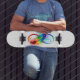 Skateboard Symbole d'infini avec plume arc-en-ciel