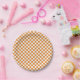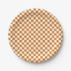 Skateboard Lasst es uns kick, Geburtstagsparty-Teller mit orangefarbenem Karo.