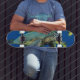 C'est une planche à roulettes avec une tortue de mer verte sur le fond comme vous pouvez voir qui peuvent rendre votre tour plus populaire qu'il est.
