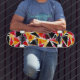 Skateboard Triangles, formes géométriques, jaune et rouge