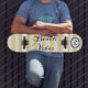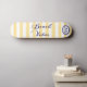 Prenez le soleil en patinant avec ce skate board d'inspiration plage et aéré. Avec ses larges rayures jaune et blanc clair, et ses "Beach Vibes" en élégante typographie de script le long du pont, la planche rayée preppy est votre passeport pour cool côtier décontracté. Personnalisez avec une initiale comme un monogramme qui apparaîtra dans les cercles dans un style hublot. Que vous soyez au parc, en ville ou sur la promenade, ce pont personnalisé apporte charme balnéaire à chaque trajet.