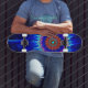 Une image fractale multicolore ; rose orange et bleu sur un arrière - plan plus foncé.
