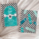Skateboard Zwei Krasse 2. Geburtstag laden mit schwarzem Karo und blauem Skateboard ein.