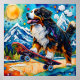 Adorable Berner Hundeschlittschuhlaufen mit Bergen im Hintergrund AI generiert Kunst