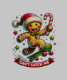 Ein fröhlicher Lebkuchenmann, der eine Weihnachtsmannmütze und eine heilige Dekoration trägt, ist Skateboarden mit einem Bonbons in der Hand. Umgeben von farbenfrohen Sternen strahlt er einen festlichen und spielerischen Urlaubssgeist aus. Ein Banner am unteren Rand lautet: "KANN MICH NICHT FANGEN."