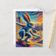 Skateboarding Rabbit farbenfroher Spaß surreal Postkarte