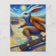 Skateboarding Surreal Colorful and Fun Rabbit Postkarte