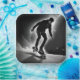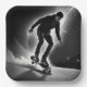 Ein Skateboarder wird mittendrin gefangen genommen und gleitet auf einem Brett, während Blitzschrauben den Nachthimmel hinter ihm erhellen