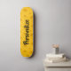 Skateboardplattform Schweizer Käse des individuellen Namens gelbe. Cooler hölzerner Skatebrettentwurf für Jungen und Mädchen. Spaß-Geburtstagsgeschenkidee für Kinder. Personifizieren Sie mit individuellem Namen oder Monogramm. Lustige Geburtstagsgeschenkidee für Sohn, Enkel, Tochter, Schwester, Bruder, Kinder der Freunde etc. bürsten Skripttypographieschablone.