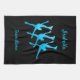 Türkisblaues personalisiertes Eis-Skate-Handtuch für synchronisierten Skater - ein nützliches synchronisiertes Skaten-Geschenk zum Trocknen von Klingen nach der Praxis.Farben: Farbiges blaues Eis auf schwarzem Hintergrund.Design: 3 Skater machen Arabesques + personalisieren Sie mit dem Namen des Skaters Eis + personalisieren Sie mit dem Namen des Synchro-Teams.