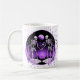 Sippen Sie Ihre Lieblings-Braut im dunkel bezaubernden Stil mit der kosmischen Liebe Skelettons Tasse. Auf einer Seite befindet sich ein Skelettpaar, das Händchen hält, umgeben von leuchtenden fluoreszierenden lila Herzen, die durch eine traumhafte lila Landschaft unter einem leuchtenden lila Mond treiben. Das Design setzt sich nahtlos auf der anderen Seite fort, wo die Phrase "Bis zum Tod macht uns Teil" elegant dargestellt wird, verbunden durch eine gotisch inspiriert lila Filigrane. Diese Tasse ist perfekt für den Morgenkaffee oder den Nachts-Tee. Sie ist eine romantische Art, Ihren Tag mit einer für immer anhaltenden Liebe zu beginnen.