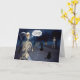 Jeder Empfänger erhält diese alberne Halloween-Karte mit einem Skelett, das denkt, Witze zu erzählen, und einem Haufen von niedlichen Kindern, die sich an Halloween-Abend austrickten oder sich behandeln lassen. Aber warten Sie, ist das ein erschrecktes Skelett auf der Straßenseite? Die Pointe ist in der Karte.