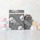 DEAD LEAF SOCIETY SKELETON. GENTLEMAN SKULL MIT AUTUMN LÄSST MATTE GIFT WRAP PAPER Wiederholung, Schwarz und Weiß....Suchen nach passenden Tags und Bags Susan Brack Design