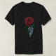 A captivating design featuring a striking red rose nestled within the intricate silhouette of a skeleton hand, showcasing an edgy yet elegant aesthetic.