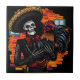 Mit dieser einzigartigen Keramik-Kachel mit einem Skelett Mariachi, das einen Hahn hält, verleihen Sie Ihrem Raum einen kühlen Charakter. Ideal für Liebhaber mexikanischer Kultur, Tag der Toten Kunst oder für alle, die ein lustiges und auffälliges Design schätzen. Diese vielseitige Kachel kann als Zuhause-Dekor, als Trivet oder als Statement-Stück für Ihre Wand verwendet werden.