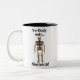 Skeleton No-Body Funny Two-Tone Coffee Mug originally designed by Nisha Prabhu. Sip your favorite beverage with a side of humor using our Skeleton No-Body Funny Two-Tone Coffee Mug! This whimsical mug features a delightful skeleton design paired with the cheeky phrase "No-body" making it the perfect companion for your morning coffee, evening tea, or any drink that needs a splash of laughter! With its charming skeleton illustration and clever pun, this mug adds a touch of playfulness to your daily routine. It’s ideal for those who appreciate a little humor with their caffeine! The stylish two-tone color scheme gives this mug an eye-catching look.