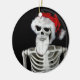 Einzigartige Weihnachtsschmuck mit einem Skelett Santa vor schwarzem Hintergrund. Dunkel und humorvoll für einen alternativen Urlaub!