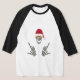 Eine kühne und humorvolle Fusion von Halloween und Weihnachten: Dieses grinsende Skelett mit feurigen Augen stürzt eine Weihnachtsmannmütze, während es eine rebellische Geste des doppelten Teufels bricht. Ideal für göttliche Urlaubsgeschenke, Party oder gotische Weihnachtsdekorationen mit Einstellung.