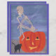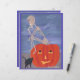 Das schöne Bild eines Skeletts Thinkers, während er auf einem niedlichen Halloween-Kürbis sitzt, wird auf 8,5 x 11 Zoll Flachpapier gedruckt. Der Kürbis schaut nach oben und hat seine Zunge heraus. Eine schwarze Katze ist vom Kürbis stehend. Der Himmel des Abends ist in lila und unscharfen Blautönen gehalten. Ideal für Scrapbooking und andere Anwendungen im Hintergrund. Vielen Dank für Ihren Einkauf bei ScrapbookBackground auf Zazzle.