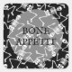 Skelette auf schwarzem Hintergrund und BONE APPÉTIT in schicken Schriften, diese Aufkleber sind Spaß für Ihre Halloween-Party-Einladungen oder Gastgeschenke. PASSENDE Artikel in unserem Geschäft.