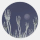 Des autocollants d'Halloween avec des squelettes avec leurs mains dans l'air.