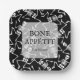 Skelette auf schwarzem Hintergrund und BONE APPÉTIT in schicken Schriften, diese quadratischen Teller (in 2 Größen) sind Spaß für Ihr Halloween-Party oder Halloween Geburtstagsfeier. PASSENDE Artikel in unserer Sammlung.