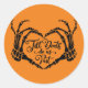 Stilvolle Halloween-Aufkleber mit Skeletthand in Herzform.