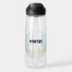 Blaue und grüne personalisierte Wasserflasche mit Vintagem Retro-Ambiente mit einem Skelett in einer Sonnendeck, die im Wald golfen.