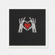 Skeletthandschuhe formen ein Herz mit rotem Herzen Serviette