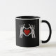 Skeletthandschuhe formen ein Herz mit rotem Herzen Tasse