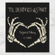 Fügen Sie Ihrer Hochzeit eine gruselige, personalisierte Touch mit diesen individuellen Weinflaschen-Etiketten hinzu. Diese Papieretiketten sind schwarz und zeigen eine Abbildung der Skelettopfhand in einer Herzform, die die Namen der Braut und des Bräutigams und das Hochzeitstag umrahmt. Darüber ist Ihr eigener Slogan. Die Grafik und der Text sind in Creme oder Elfenbeinfarbe. Der makabre Stil ist ideal für Hochzeiten im Oktober oder für Veranstaltungen mit einem Gothic-Thema.