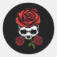 Skelettschädel mit Rose Romantischer Blumentod Runder Aufkleber