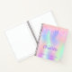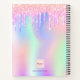 A trendy holographic colored background with unicorn and rainbow pastel colors in pink, purple, rose gold, mint green. Decorated with faux glitter drips in rose gold, pink and purple. Personalize and add your monogram initials, firs name and full name. Purple and white colored letters. A notebook for drawings, sketching, notes and school homework.